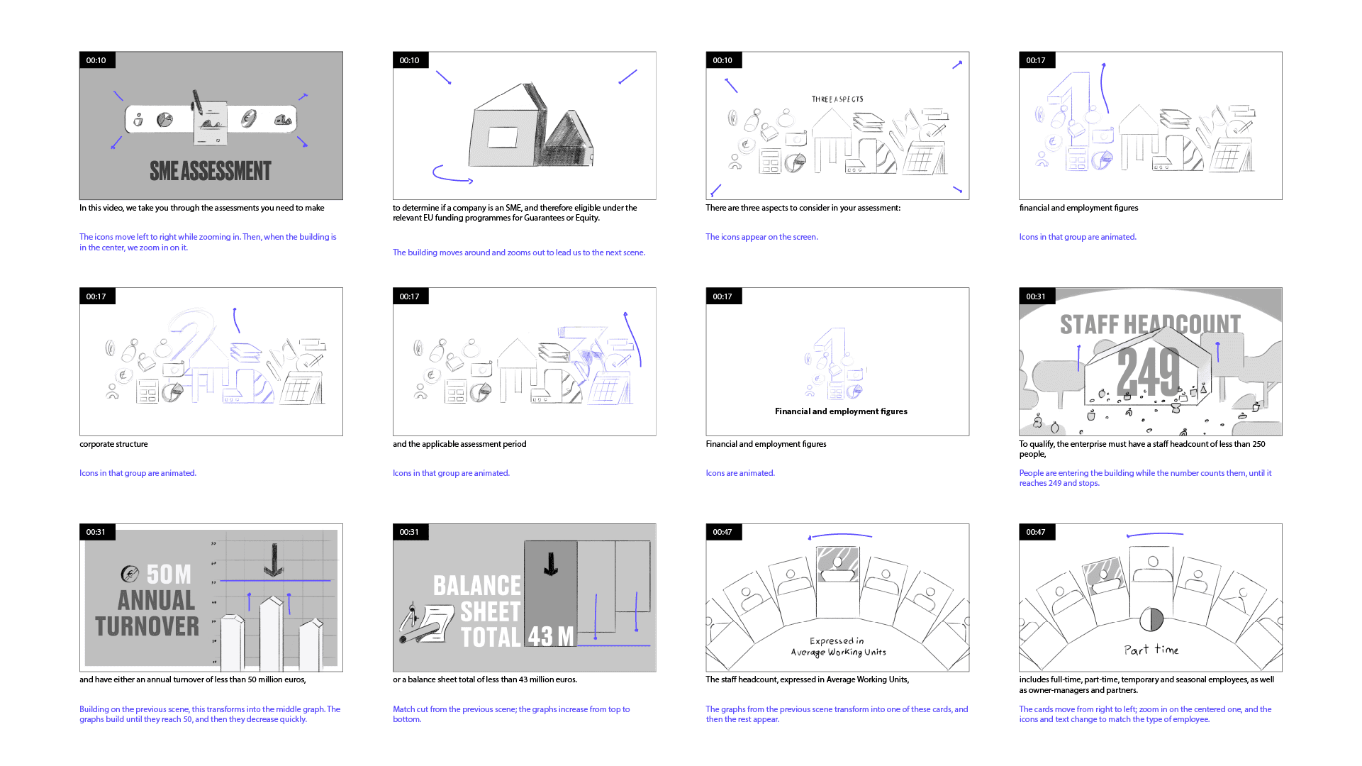 I collaborated with the agency Deuux to create a series of explanatory videos for the European Investment Fund (EIF). The goal was to transform complex technical and legal concepts—such as SME eligibility criteria and the SEP program—into clear, professional, and engaging visual pieces for a European institutional audience